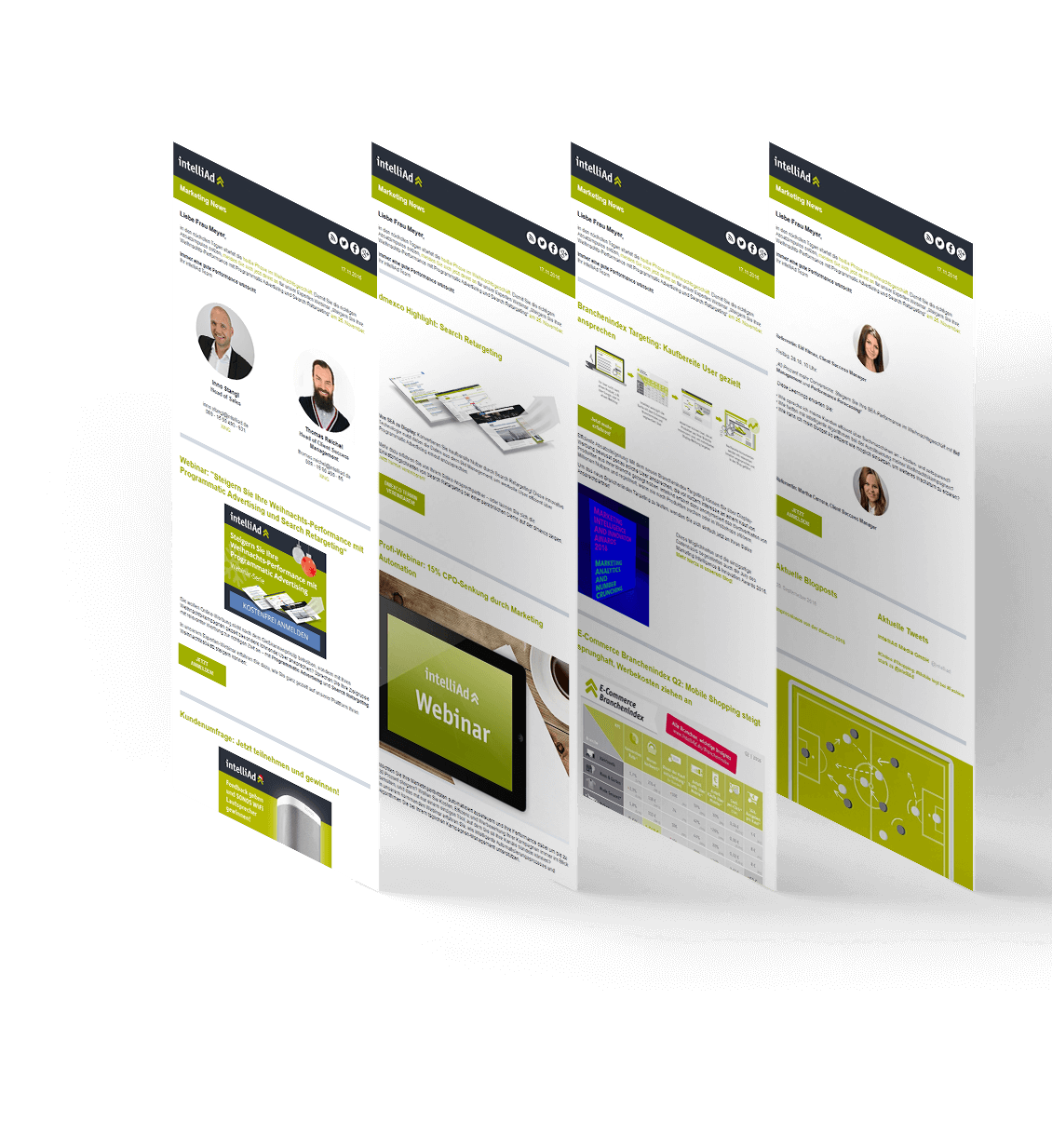 Mit dem intelliAd „Online Marketing News“ Newsletter sind Sie immer up to date. Hier erfahren Sie als Erste von Branchentrends, neuen Features, aktuellen Veranstaltungen und weiteren Neuigkeiten rund um intelliAd.