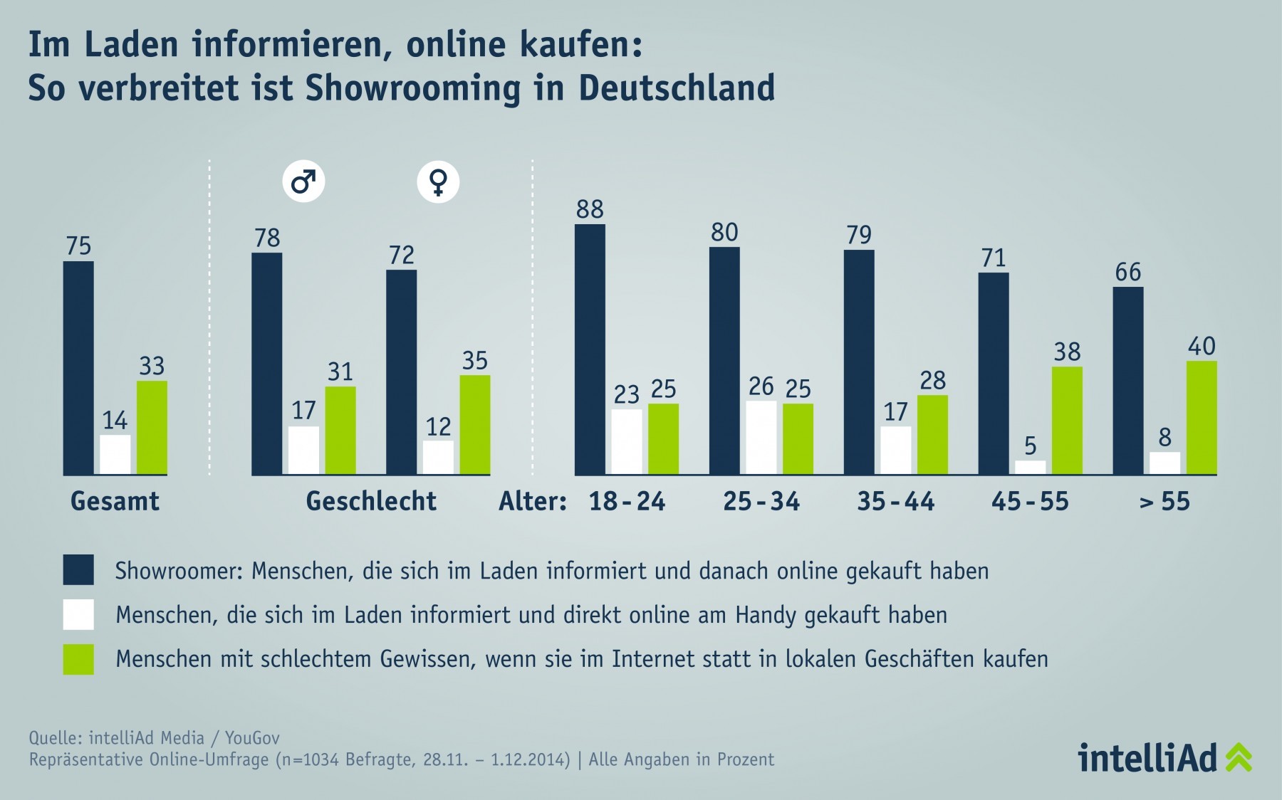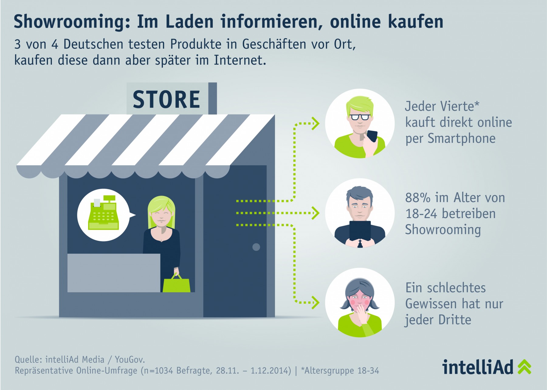 München, 15. Dezember 2014 – Smartphones verändern nachhaltig das Einkaufsverhalten der Deutschen. Um davon profitieren zu können, muss der Einzelhandel nun reagieren. Bislang konnte man noch davon ausgehen, dass sich Kunden zwar online informieren, aber im stationären Handel kaufen (der sogenannte ROPO-Effekt [research online, purchase offline]); aktuelle Analysen und Umfragen sprechen eine deutlich andere Sprache: Viele Deutsche informieren sich zwar im Geschäft über ein Produkt, kaufen später aber online (75 Prozent) oder sogar direkt mobil via Smartphone. „Um massive Umsatzeinbußen durch dieses sogenannte Showrooming zu vermeiden, können Unternehmen ihre Besucher direkt vor Ort mit Push-Nachrichten ansprechen oder im Nachgang beispielsweise über Retargeting oder Mailing-Aktionen für sich gewinnen. Wichtig ist es, das Offline-Geschäft mit der Online-Welt zu verzahnen und so einen ganzheitlichen Überblick über die Customer Journey und individuelle Kundenwünsche zu erhalten“, so Mischa Rürup, COO intelliAd Media.