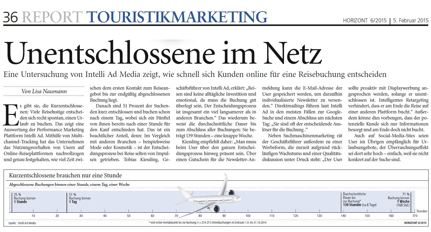In einem Tourismusmarketing-Special widmet sich die HORIZONT von intelliAd ermittelten Insights zum Buchungsverhalten der Deutschen.