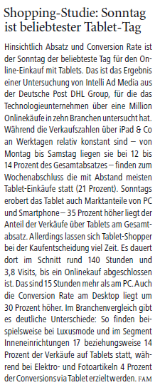 Die HORIZONT über die wichtigsten Erkenntnisse der intelliAd Customer Journey-Analyse zum Tablet als Shoppingtool.