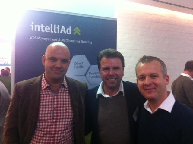 Wolfhart Fröhlich mit Erik Siekmann (Digital Forward) und Jens Poness (ImmobilienScout 24) aum intelliAd Stand