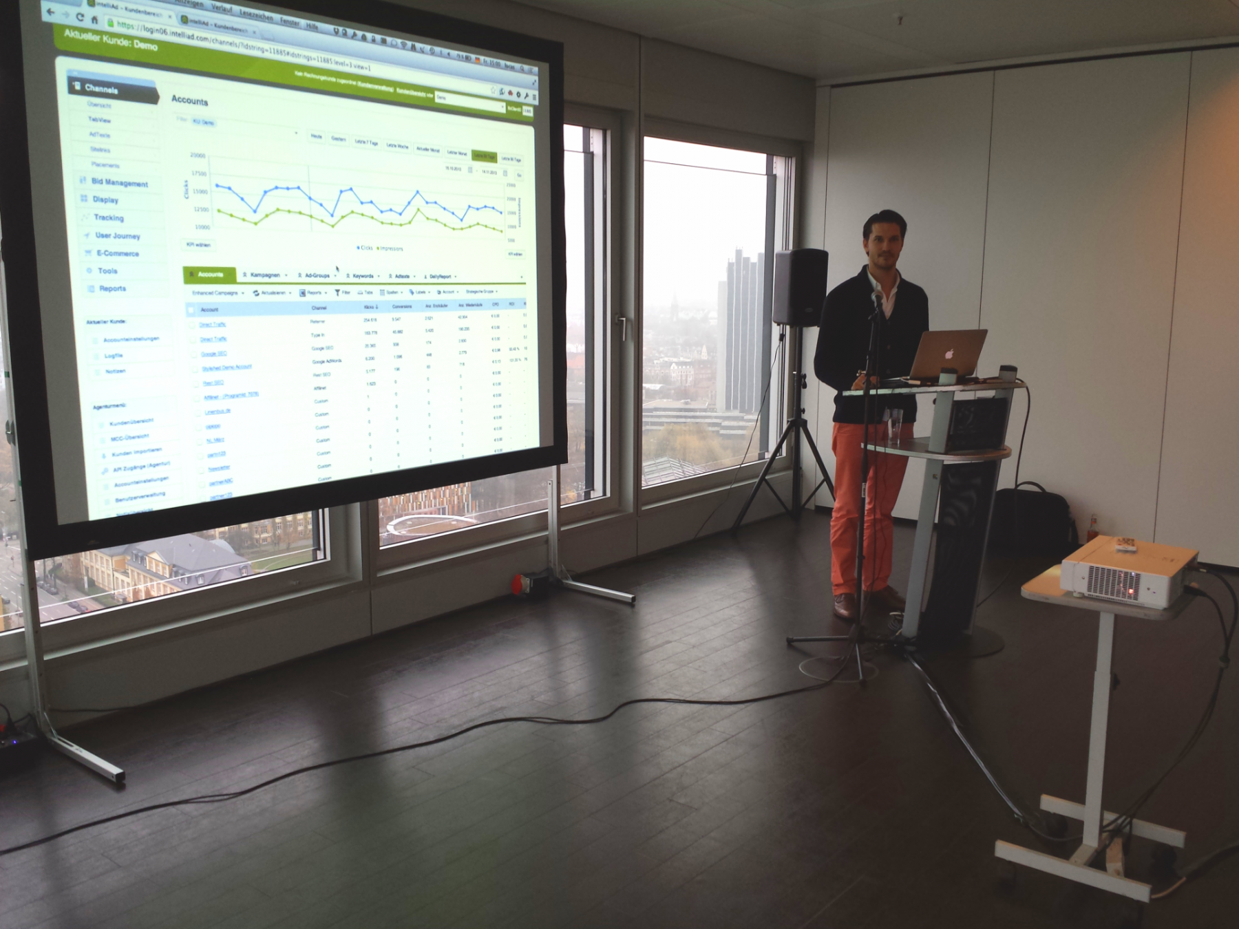 Am nächsten Tag stellten auf dem sog. Toolday Referenten von insgesamt sieben Anbietern von Real-Time-Bidding und Multichannel-Tracking-Lösungen ihre Tools vor, unter anderem auch Lucas Frischmann und Christian Boss Henrichsen, beide Business Development Manager bei intelliAd. Bis zum frühen Nachmittag hatten die ersten fünf Referenten vorgetragen und ein Austausch zwischen den Anwesenden stattgefunden. Lucas Frischmann begann den intelliAd Vortrag mit einer Einführung in das Bid-Management und Multichannel-Tracking. Dabei wurden die Offline-Tracking-Lösungen Telefon- und TV-Tracking besonders hervorgehoben, da daran ein großes Interesse bestand. Im zweiten Teil präsentierte Christian Boss Henrichsen das neue intelliAd Produkt Real-Time-Bidding und zeigte den anwesenden Personen die vielzähligen Funktionen und die Möglichkeiten auf. Die Reaktionen waren durchweg positiv und es wurden mehrere detaillierte Fragen gestellt.